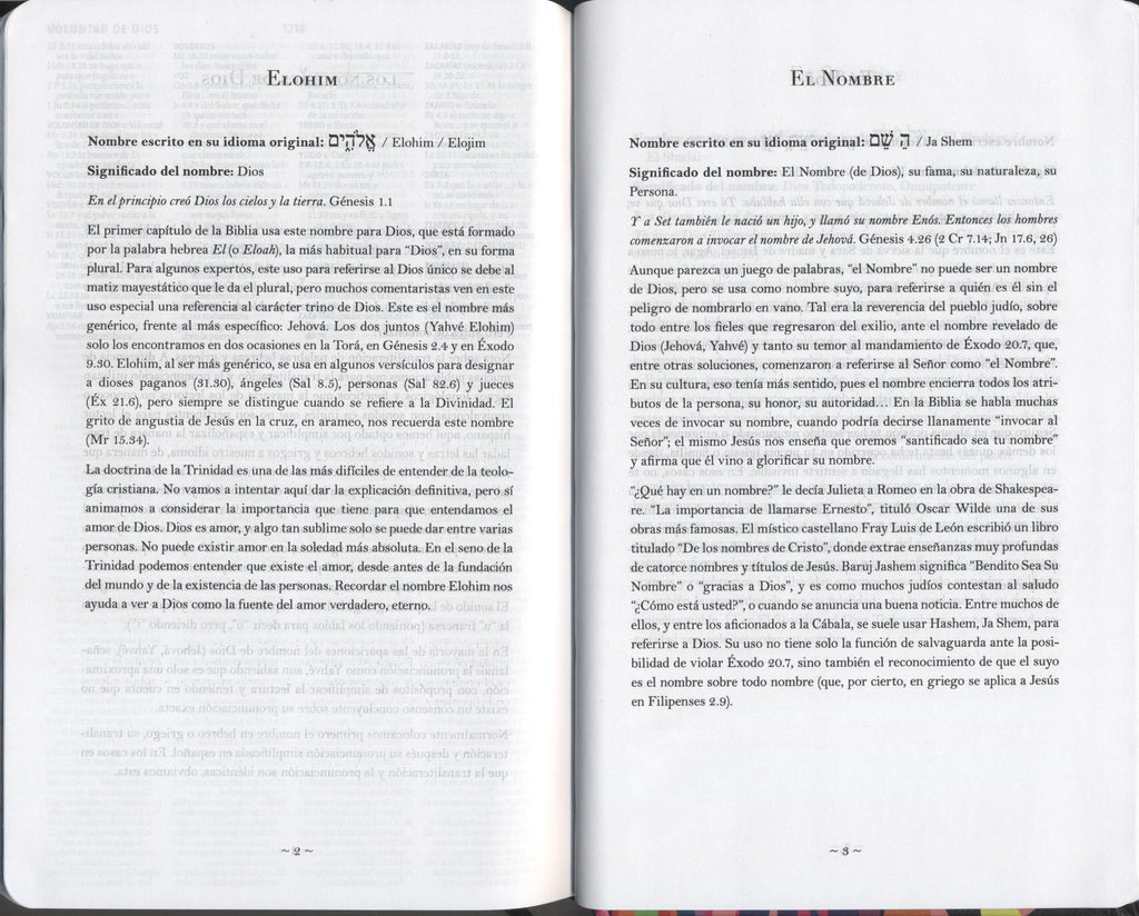 Descubre el significado Bíblico de cada nombre de Dios tanto como su aplicación en nuestro andar diario. Con letra grande y las palabras de Cristo destacadas en rojo, la Biblia incluye una guía para ayudarte a leerla completa en un año.