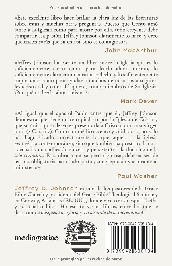 «¿Cuál es el rol de la Iglesia en una cultura cada vez más secular? ¿Cuáles deberían ser sus prioridades? ¿Cómo debe funcionar una iglesia local? ¿Por qué es necesaria la membresía en la iglesia, realmente lo es? ¿Cuál es la base para una verdadera unidad? Este excelente libro hace brillar la clara luz de las Escrituras sobre estas y muchas otras preguntas. Puesto que Cristo amó tanto a la Iglesia como para morir por ella, todo creyente debe compartir esa pasión. Jeffrey Johnson claramente lo hace, y creo que encontrarás que su entusiasmo es contagioso.»