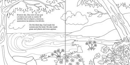 La Creación y el Muchacho Caritativo Cuaderno para Colorear Bilingue