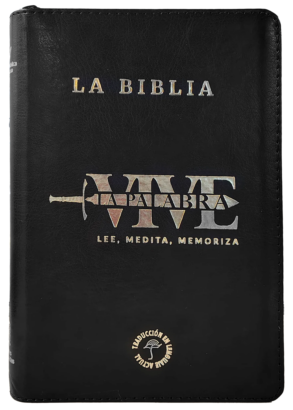 Biblia Traducción al Lenguaje Actual letra grande con cierre negro canto plateado "Vive"