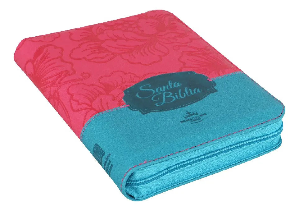 Biblia Reina Valera 1960 con cierre palabras de Jesús en rojo letra mediana fucsia/azul canto plateado