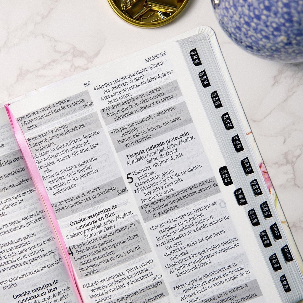 Biblia Reina Valera 1960 de Promesas · Letra gigante · Imitación piel floral con índice