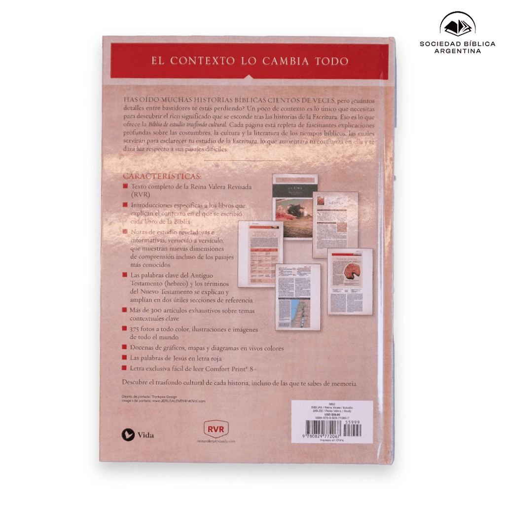 Biblia Reina-Valera 1960 De Estudio Trasfondo Cultural, Palabras De Jesús En Rojo, Letra 8 Pt, 19×26, Ilustrada, Tapa Dura