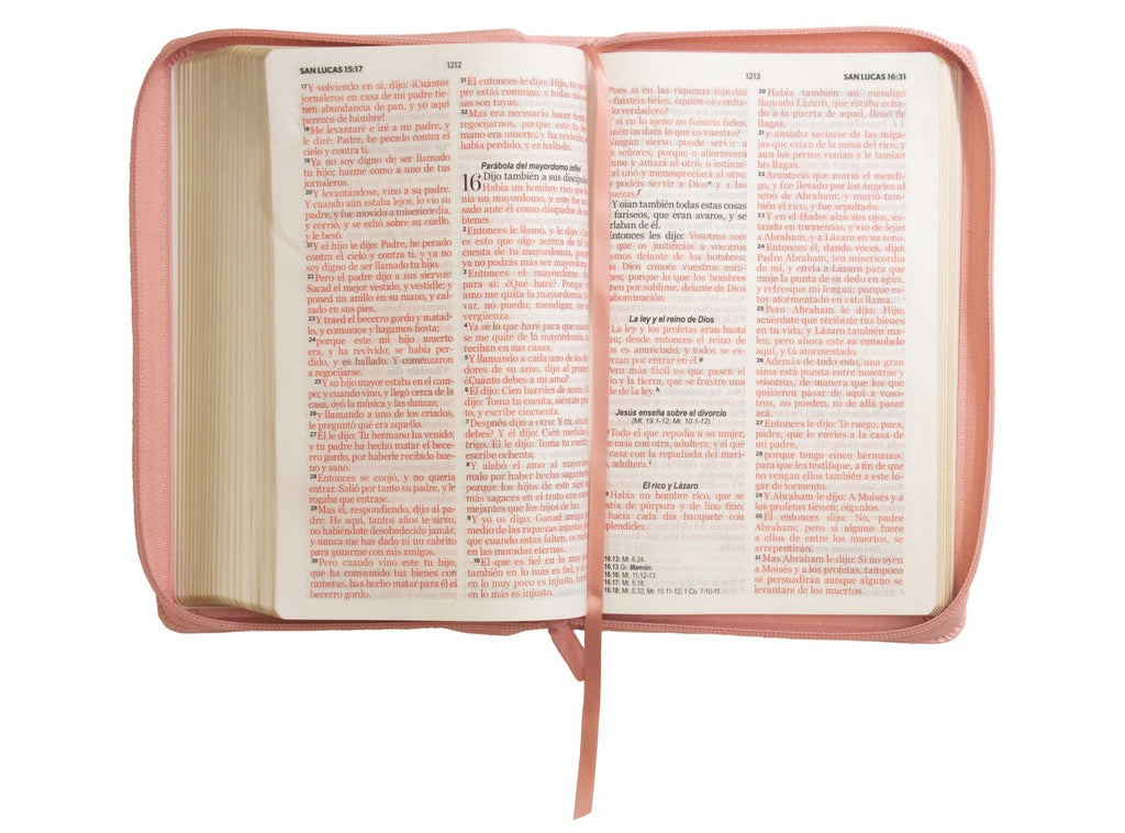 Biblia Reina Valera 1960 · 13,8x21,2 cm · Letra grande 12,5 pt · Con cierre · Edición clásica rosa