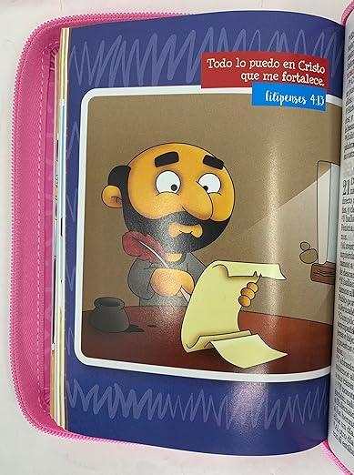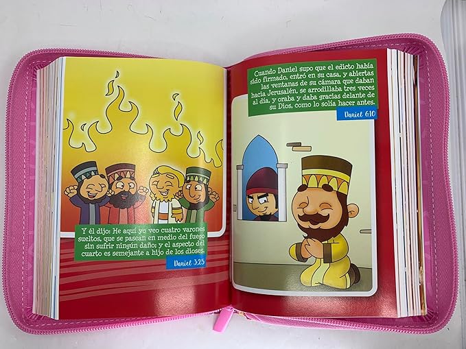 En esta Biblia los niños podrán disfrutar del texto completo de las Escrituras en Reina Valera de 1960 combinado con láminas a todo color con dibujos de las escenas más relevantes de la Biblia.