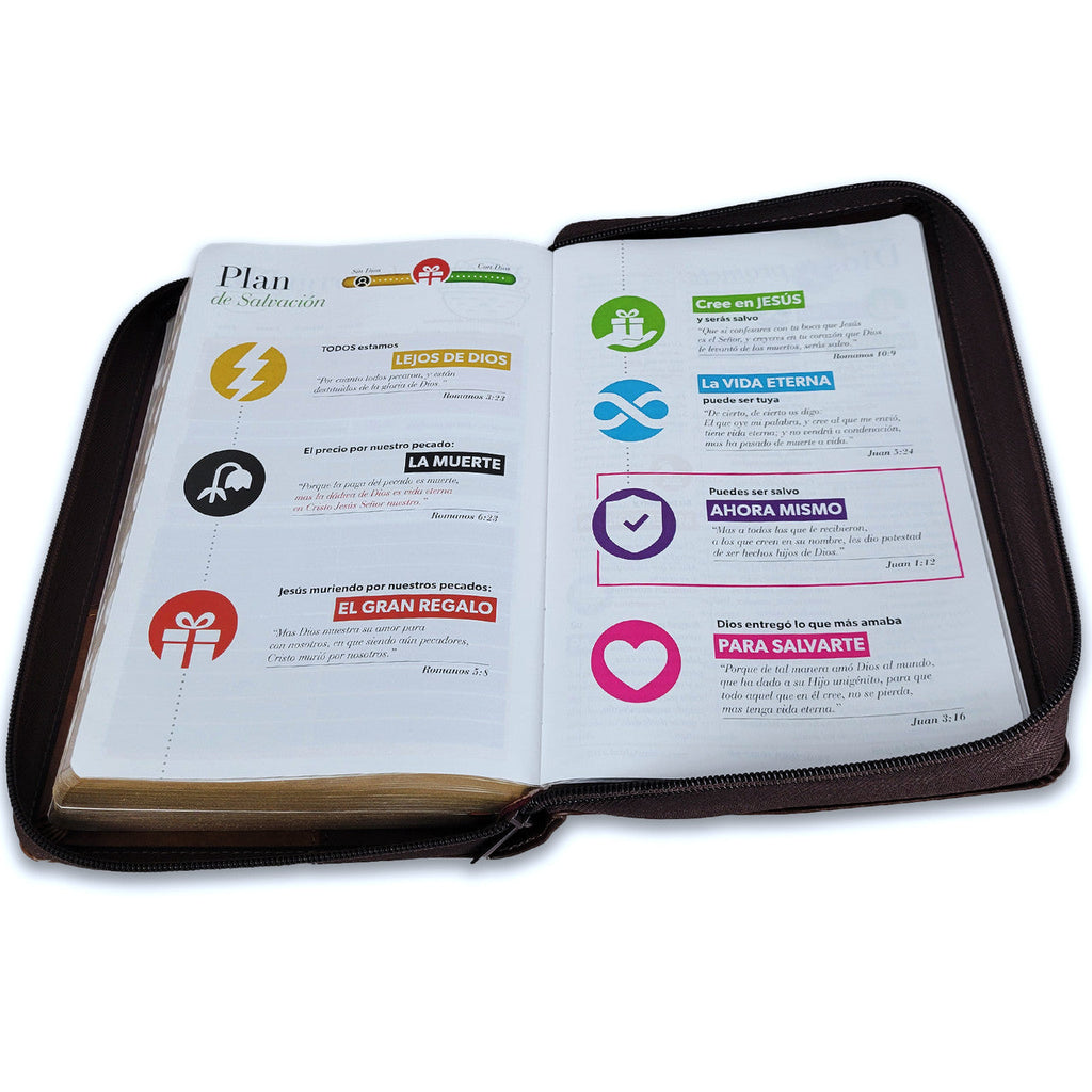 Biblia Reina Valera 1960 · 13,8x21,2 cm · Letra gigante 14 pt · Con cierre e índice · Colección Iconic café