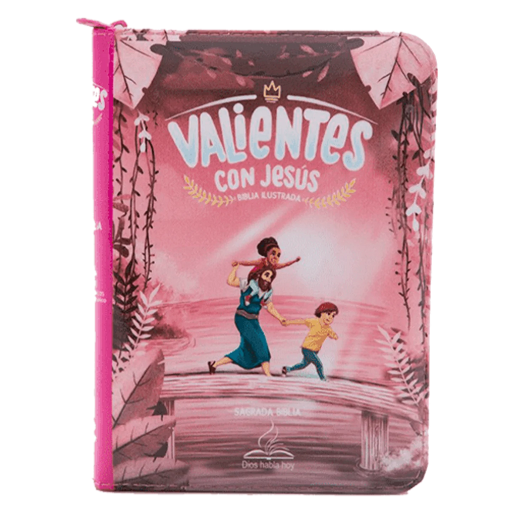BIBLIA DHH042DkZP L 8p 11x16 T PLASTICA CIERRE ILUSTRADA ROSA VALIENTES CON JESÚS CON DEUTEROCANONICOS